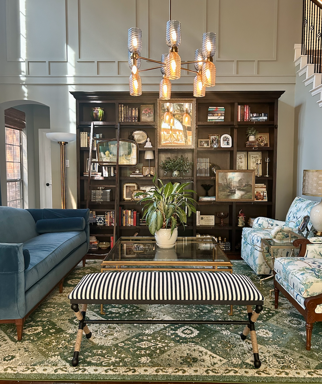 This home redesign celebrates life, healing, and personality through bold fabrics, patterns, and meaningful touches like denim, birds, and blue-and-white collections. A once-neutral space is now a soulful, vibrant reflection of its owner’s journey.